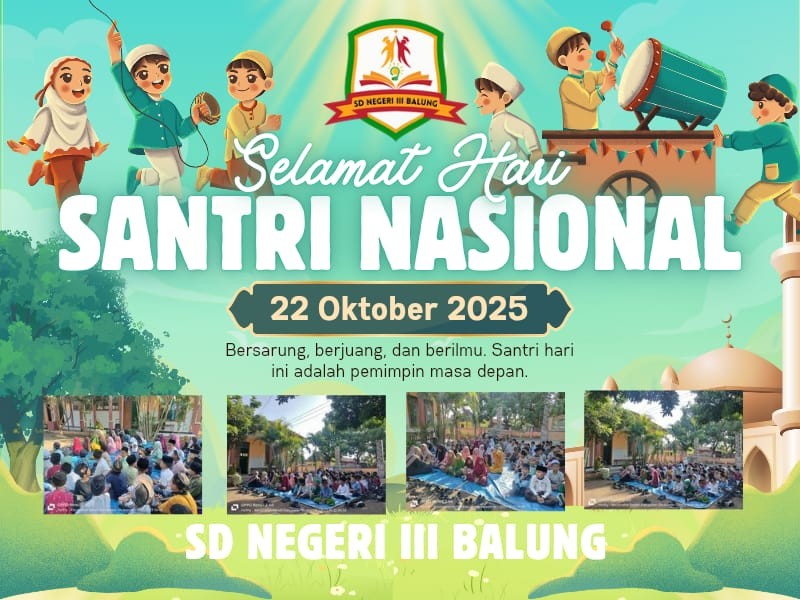 Di SD NEGERI III BALUNG, peringatan Hari Santri diawali dengan apel pagi yang penuh kekhidmatan. Para siswa mengenakan pakaian khas santri—putra memakai baju koko dan sarung, sedangkan putri mengenakan gamis atau busana muslimah. Suasana sekolah terasa berbeda: lebih syahdu namun tetap penuh semangat.