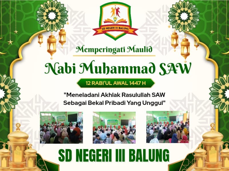 Hari ini, seluruh siswa-siswi dan bapak ibu guru SD Negeri III Balung berkumpul di dalam kelas dengan wajah ceria dan penuh semangat. Mereka mengenakan pakaian muslim rapi untuk memperingati Maulid Nabi Muhammad SAW.
